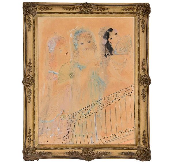 • <b>NOÊMIA MOURÃO</b><Br>(1912-1992)<Br>Damas<Br>Técnica mista s/ papel<Br>Ass., situado e datado S. Paulo 1941, cid<Br>67 x 52 cm