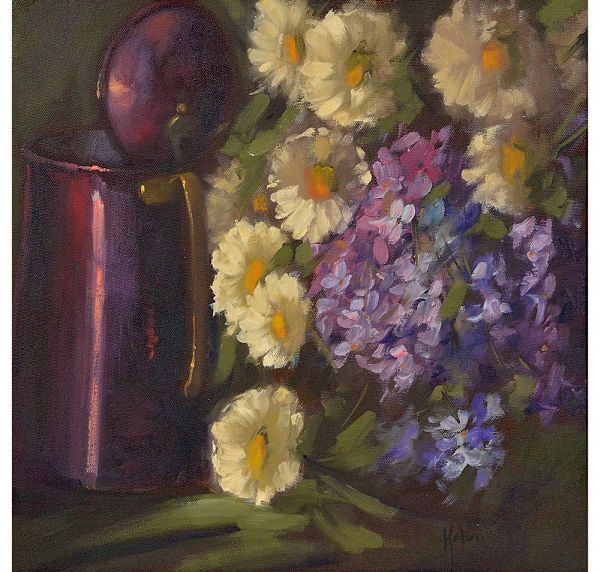 • <b>KELVA NOVAES</b><Br>Vaso de Flores<Br>Óleo s/ tela<Br>Ass. cid<Br>Ass., situado e datado S.P 2001, no verso<Br>40 x 40 cm