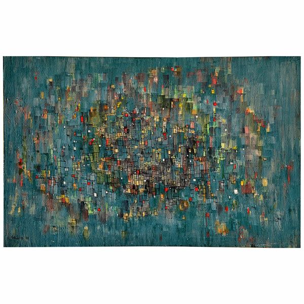 • <b>G. LUIZ</b><Br>Abstrato<Br>Óleo s/ chapa industrializada<Br>Ass. e datado 90, cie<Br>60 x 90 cm