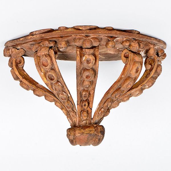 • Bela <B>talha </B>barroca em madeira esculpida e policromada, na forma de coroa encimada por elemento enrolado. Séc. XVIII. Alt. 23 cm