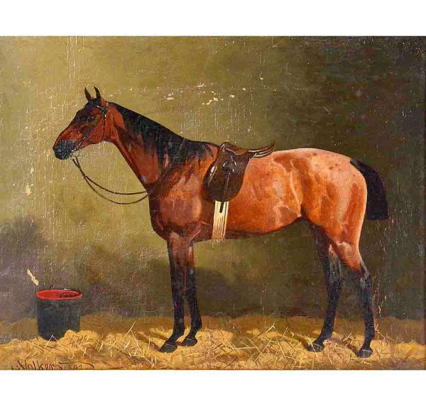 • <b>VOLKERS</b><Br>Cavalo<Br>Óleo s/ tela<Br>Ass. cie<Br>27 x 33 cm