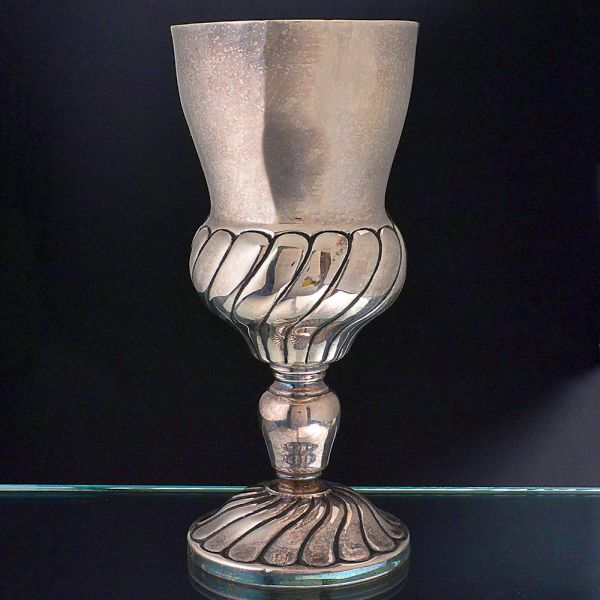 • <b>Cálice</b>  em metal com base e parte média decoradas em gomos.