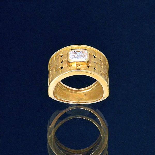 • <b>Anel </b>de ouro 18k, "design" Pepe Torras, diamante com 1,02 ct e lapidação retangular "princess". Montagem com o peso de 9 gramas.