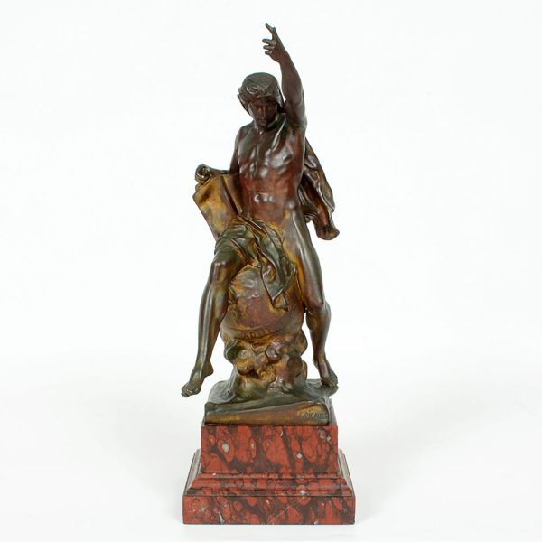 • <b>PICAULT, ÉMILE-LOUIS</b><BR>(1833-1915)<BR>Escola Francesa<BR>Ad Lumen<BR>Escultura em bronze<BR>Assinada<BR>Base em mármore<BR>Alt. da escultura 33 cm<BR>Alt. da base 8,5 cm