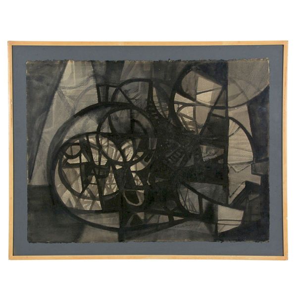 • <b>BURLE MARX, ROBERTO</b><br>(1909-1994)<br>Abstrato<br>Nanquim e aguada s/ papel<br>Ass. e datado 1979, no centro inferior<br>58 x 76,5 cm
