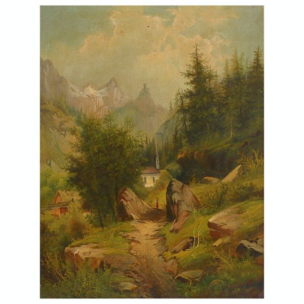 • <b>Assinatura não identificada</b><BR>Paisagem<BR> Óleo s/ tela<BR>Ass., situado e datado Paris 1875, cid<BR>80 x 64 cm