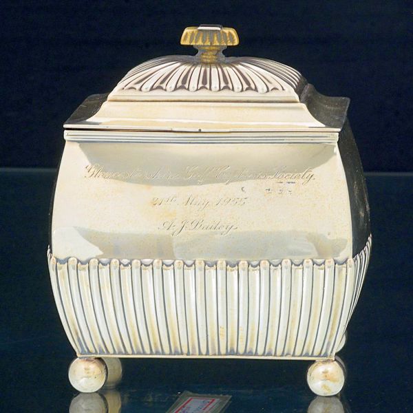 • <b>Caixa de chá </b>em prata inglesa vitoriana decorada com gomos a meia altura e tampa com pega em marfim e pés de bola. Inscrições na face anterior. Contraste da cidade de Londres 1895 e marca do prateiro HENRY WILLIAN Son & Cº. Med. 13,5 x 11 x 8,5 cm. Peso 265 gramas.
