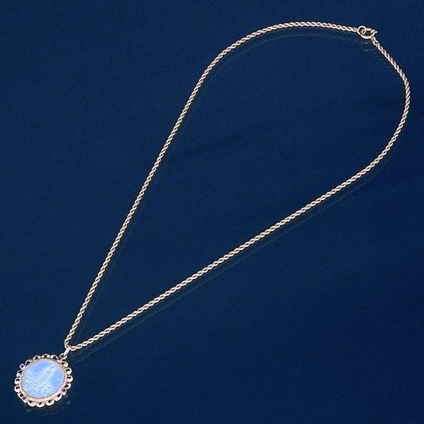 • <b>Colar com pingente </b>em ouro 18k, imagem de Nossa Senhora de Fátima em madrepérola. Peso total da peça 10,40 gramas.