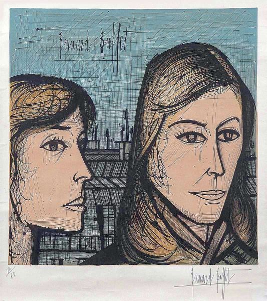 • <b>BUFFET, BERNARD</b><BR>(1928-1999)<BR>Les Parisiennes<BR>Litografia<BR>Numerada 10/60<BR>Ass. cid<BR>140 x 120 cm