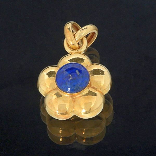 • <b>Pendente </b>de lápis lazúli montado em ouro 18k. Peso total da peça 11,66 gramas.