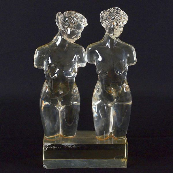 • <b>LOREDANO ROSIN</b> (1936-1992) - Nus femininos. Escultura em vidro de Murano, com base retangular. Assinado na frente à esquerda. Bicados na face anterior esquerda. Alt. 56,5; Compr. 30 cm